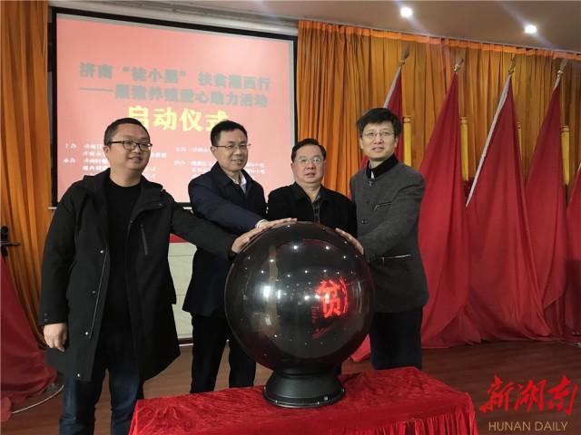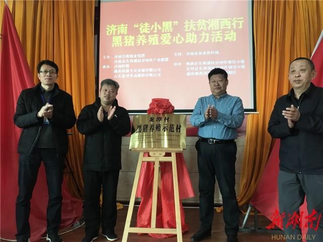 活動上,湘西州委常委、州人民政府副州長董懷敏,濟南日報報業(yè)集團副總編輯、濟南時報社社長樊詳欽,濟南市農業(yè)農村局農業(yè)農村服務中心主任劉佩祿,花垣縣龍?zhí)舵?zhèn)人大主席龍玉章共同按下啟動球,開啟“濟南‘徒小黑’扶貧湘西行——黑豬養(yǎng)殖愛心助力行動”。