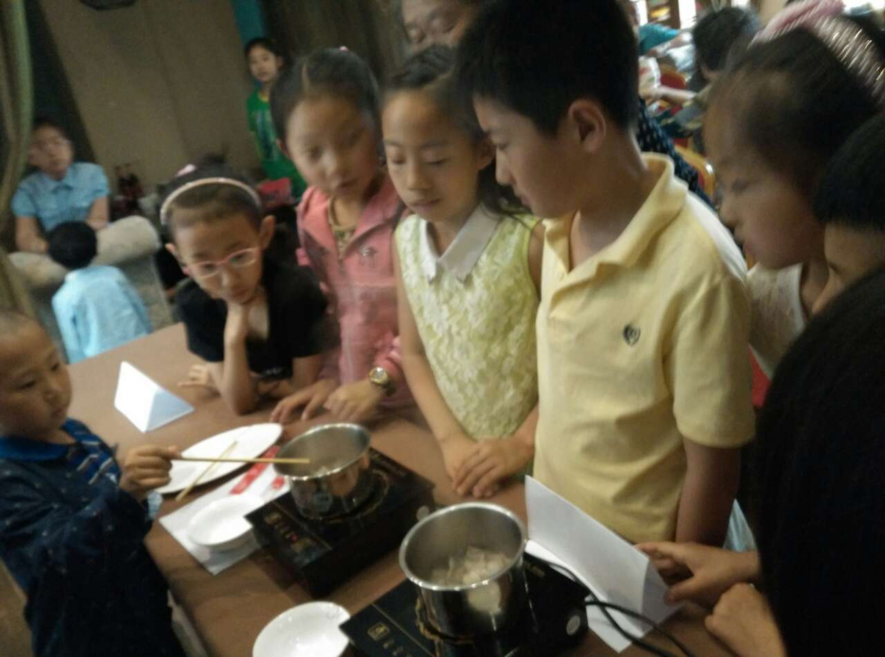 在專家的指導(dǎo)下,孩子們興致勃勃地完成了黑白兩種豬肉高濃湯樣本的制作和PH值對比測試,并和家長一道品嘗了美味的兒童營養(yǎng)套餐。